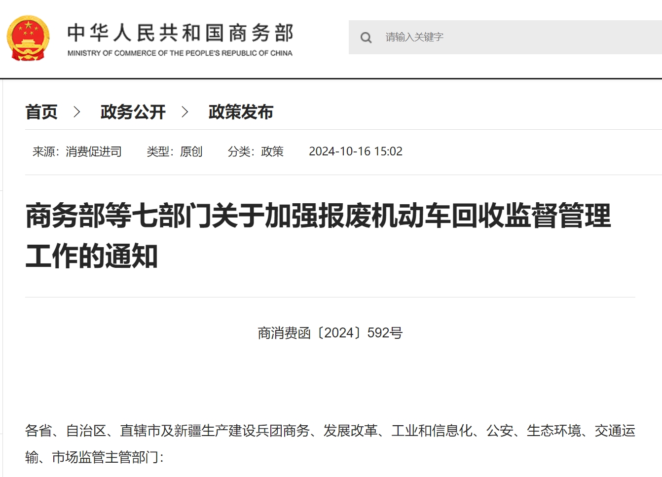 商務(wù)部等七部門:關(guān)于加強(qiáng)報(bào)廢機(jī)動(dòng)車回收監(jiān)督管理工作的通知
