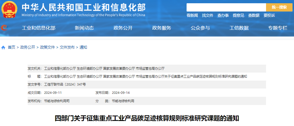 工信部等部門關(guān)于征集鋰電池、新能源汽車、光伏和電子電器等重點產(chǎn)品碳足跡核算規(guī)則標(biāo)準(zhǔn)研究課題的通知
