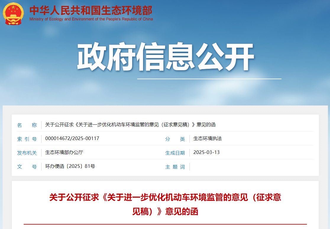 生態(tài)環(huán)境部關(guān)于進(jìn)一步優(yōu)化機(jī)動(dòng)車環(huán)境監(jiān)管的意見(征求意見稿)
