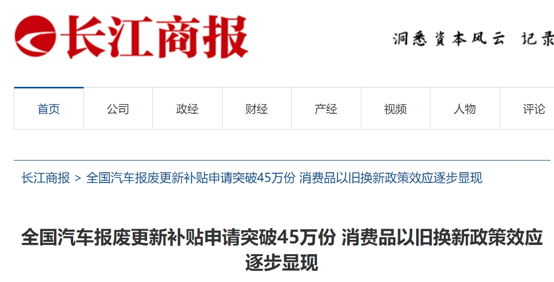 全國汽車報(bào)廢更新補(bǔ)貼申請(qǐng)突破45萬份
