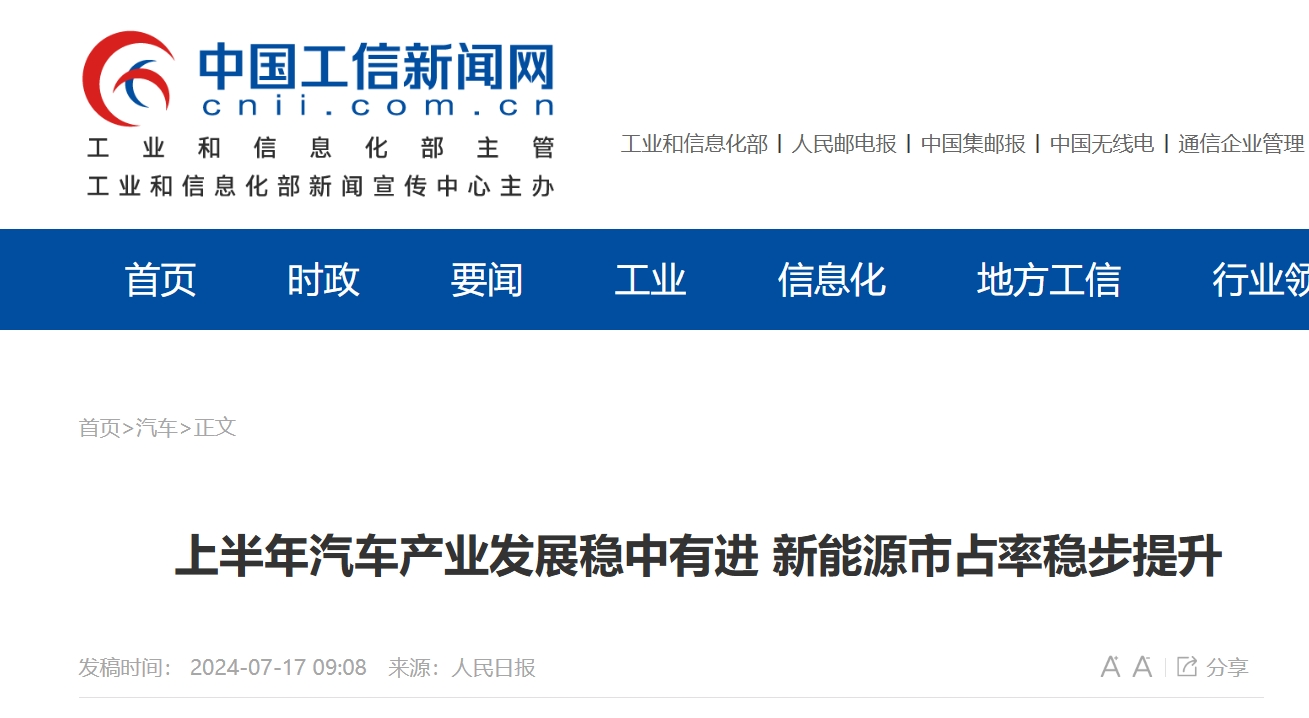 上半年汽車產(chǎn)業(yè)發(fā)展穩(wěn)中有進(jìn)新能源市占率穩(wěn)步提升
