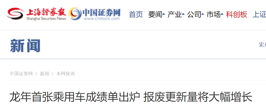 龍年首張乘用車成績單出爐報廢更新量將大幅增長