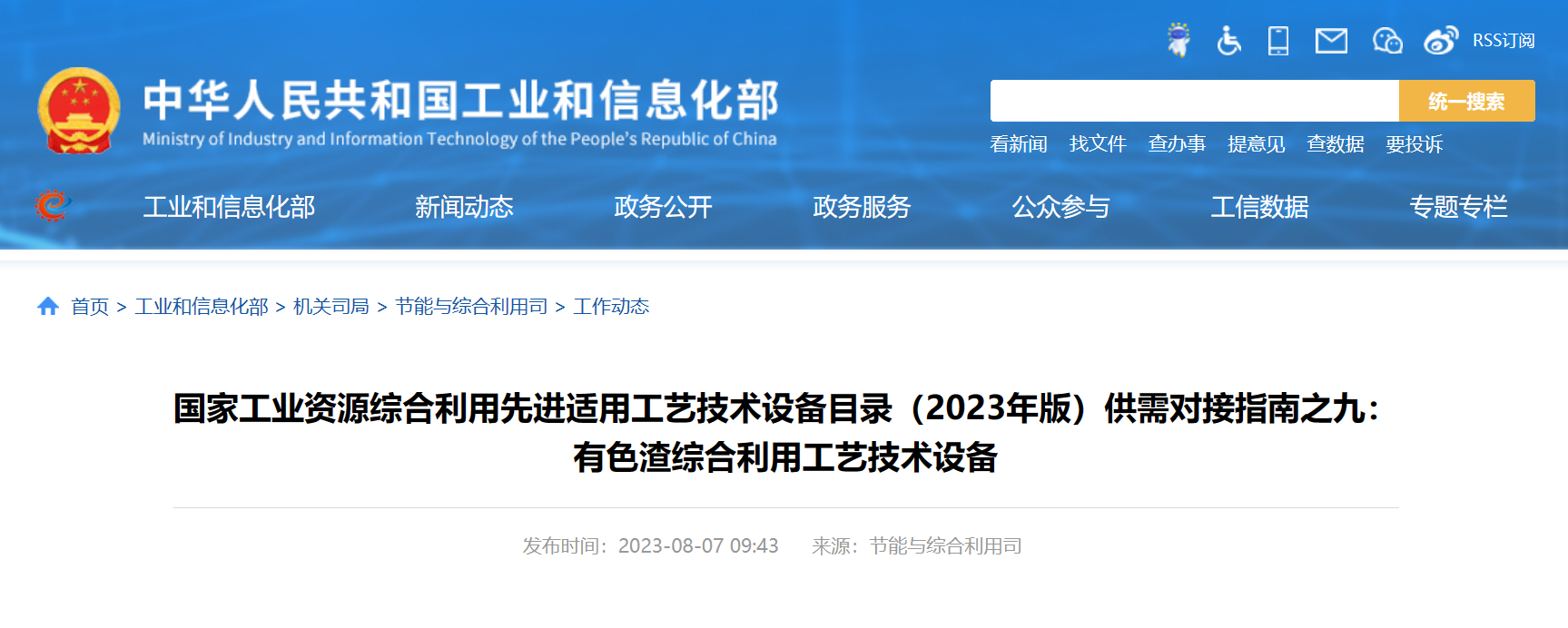 國家工業(yè)資源綜合利用先進(jìn)適用工藝技術(shù)設(shè)備目錄(2023年版)供需對接指南之九:有色渣綜合利用工藝技術(shù)設(shè)備