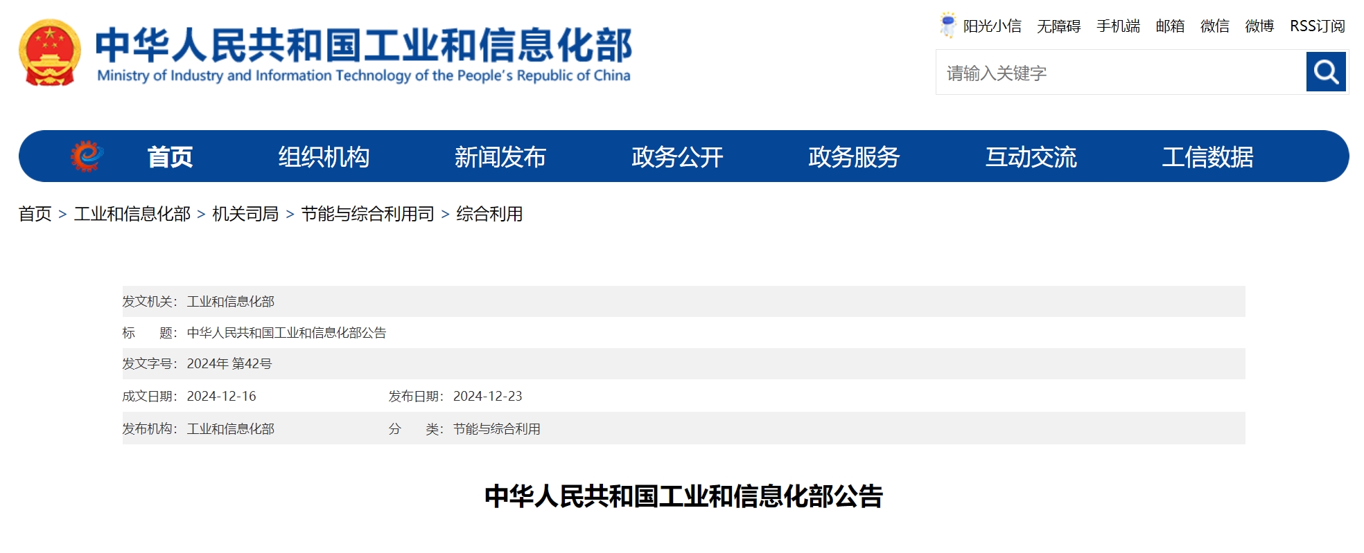 工信部發(fā)布《新能源汽車廢舊動(dòng)力電池綜合利用行業(yè)規(guī)范條件(2024年本)