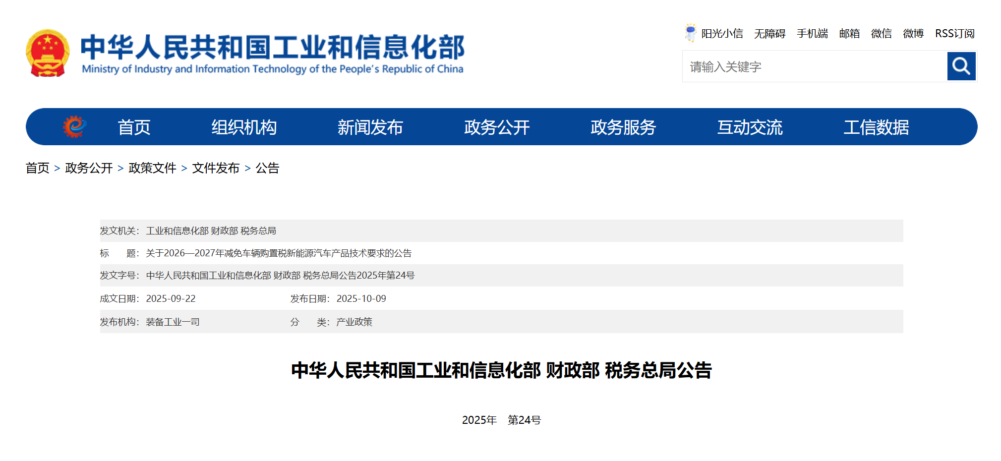 工信部等三部門調整2026—2027年減免車輛購置稅新能源汽車產(chǎn)品技術要求