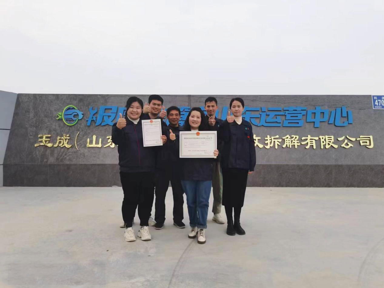 玉成(山東)報(bào)廢機(jī)動(dòng)車(chē)回收拆解有限公司位于濟(jì)南市商河縣經(jīng)濟(jì)開(kāi)發(fā)區(qū)科源街4665號(hào),是濟(jì)南市重點(diǎn)招商引資項(xiàng)目。公司注冊(cè)于2021年9月21日,于2023年3月取得山東省商務(wù)廳認(rèn)定的報(bào)廢車(chē)回收拆解資質(zhì),隸屬于中國(guó)報(bào)廢車(chē)行業(yè)較 大的資源整合商——玉成有限公司。