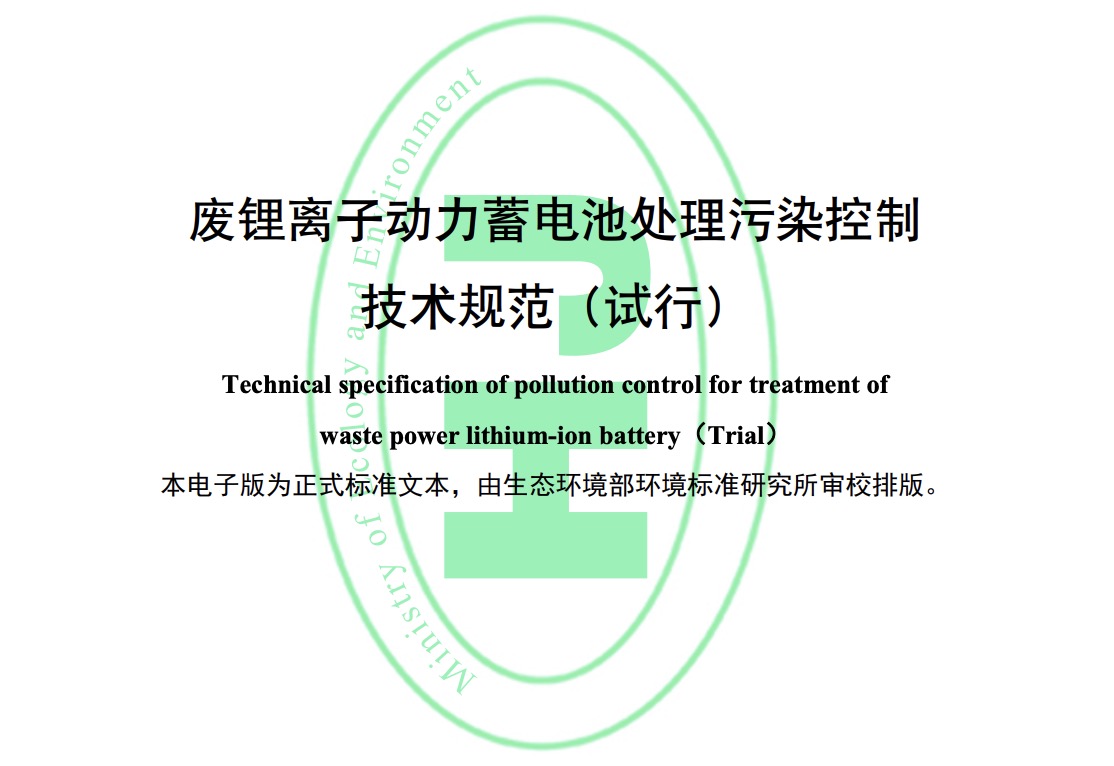 為貫徹《中華人民共和國環(huán)境保護(hù)法》《中華人民共和國固體廢物污染環(huán)境防治法》等法律法規(guī),防治污染,保護(hù)生態(tài)環(huán)境,規(guī)范和指導(dǎo)廢鋰離子動(dòng)力蓄電池處理過程,制定本標(biāo)準(zhǔn)。