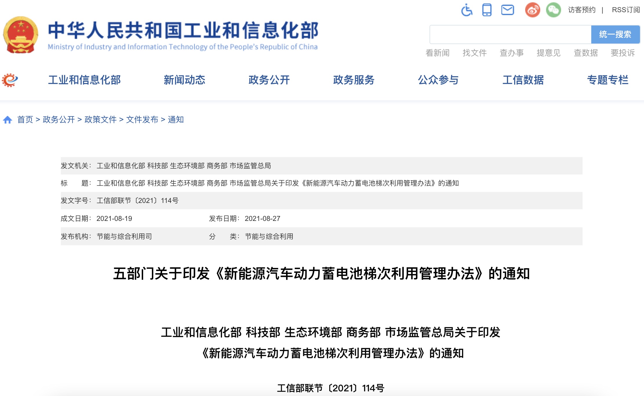 為加強(qiáng)新能源汽車動(dòng)力蓄電池梯次利用管理,提升資源綜合利用水平,保障梯次利用電池產(chǎn)品的質(zhì)量,工業(yè)和信息化部、科技部、生態(tài)環(huán)境部、商務(wù)部、市場監(jiān)管總局聯(lián)合制定了《新...