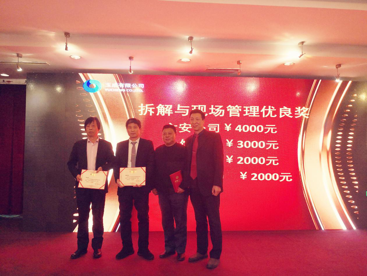 此次年會,公司設(shè)置了回收優(yōu)良獎、回用件銷售優(yōu)良獎、拆解與現(xiàn)場管理優(yōu)良獎、設(shè)備管理優(yōu)良獎、Z值優(yōu)良獎、費(fèi)用控制優(yōu)良獎、經(jīng)營改善獎、F值-利潤優(yōu)良獎等8個集體獎項(xiàng)和14個個人獎項(xiàng),現(xiàn)場表彰并獎勵了2018年度在各業(yè)務(wù)環(huán)節(jié)中表現(xiàn)突出的公司和******員工,獲獎員工紛紛感言,表示要在新的一年里繼續(xù)努力,扎實(shí)工作,為公司的進(jìn)步和發(fā)展做出自己新的更大的貢獻(xiàn)。