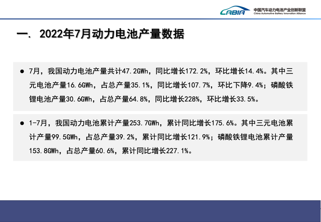 2022年7月動力電池月度數(shù)據(jù)發(fā)布如下。
